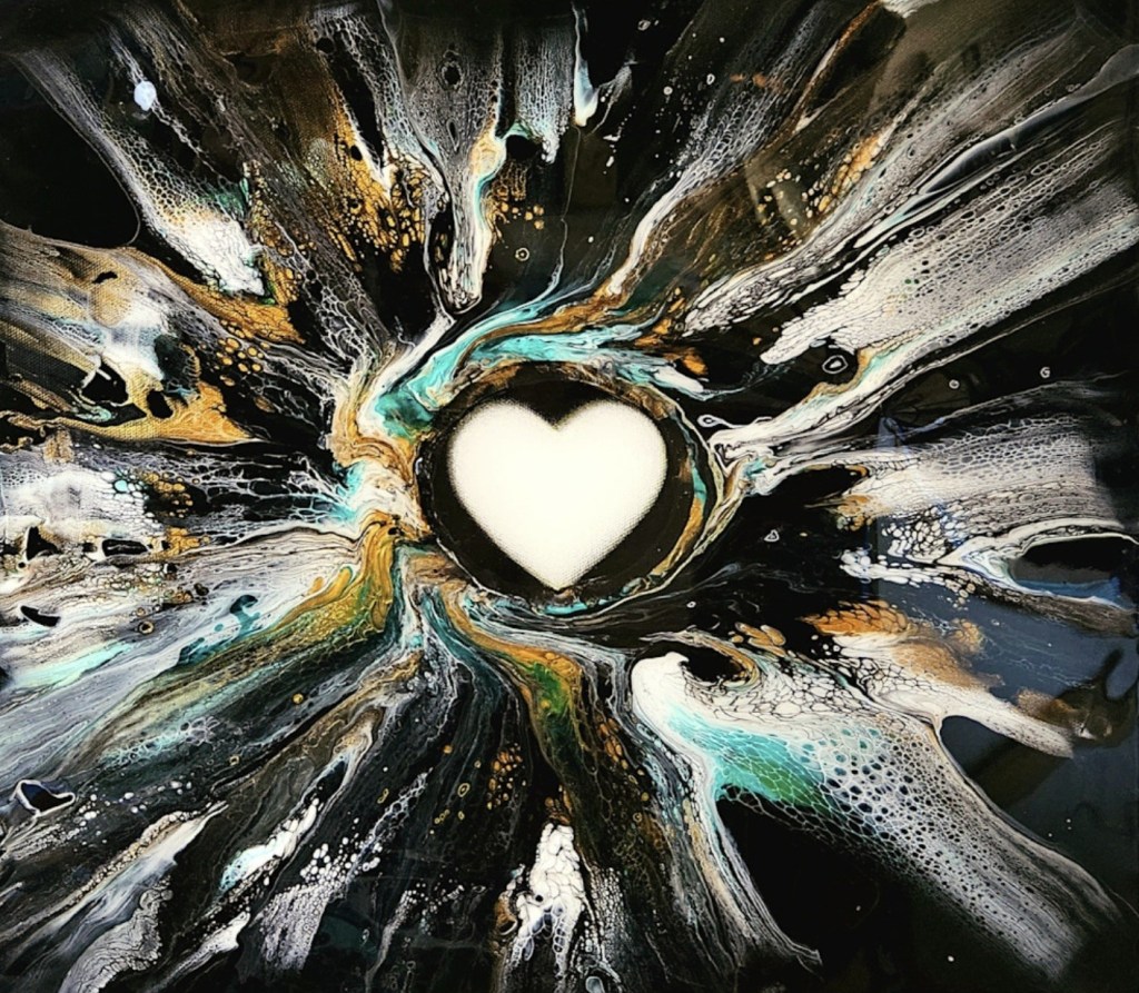 The black center represents the void—the pain, the unknown, the parts of ourselves we keep hidden.  Aside from that, I am also inspired by our universe, whether that’s the depths of our oceans or galaxies far away. I have also been fascinated by black holes, so naturally, it would show up in my work.
