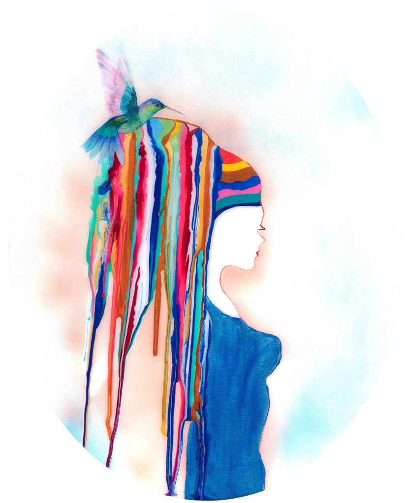 Then I work in layers— background first, followed by drying time, and then additional paint or pen and ink work. This pen & ink work takes the longest, as this is where I create all the details. And then I add art resin on top of many of my paintings as it seals the painting and helps the colors show off their vibrancy.